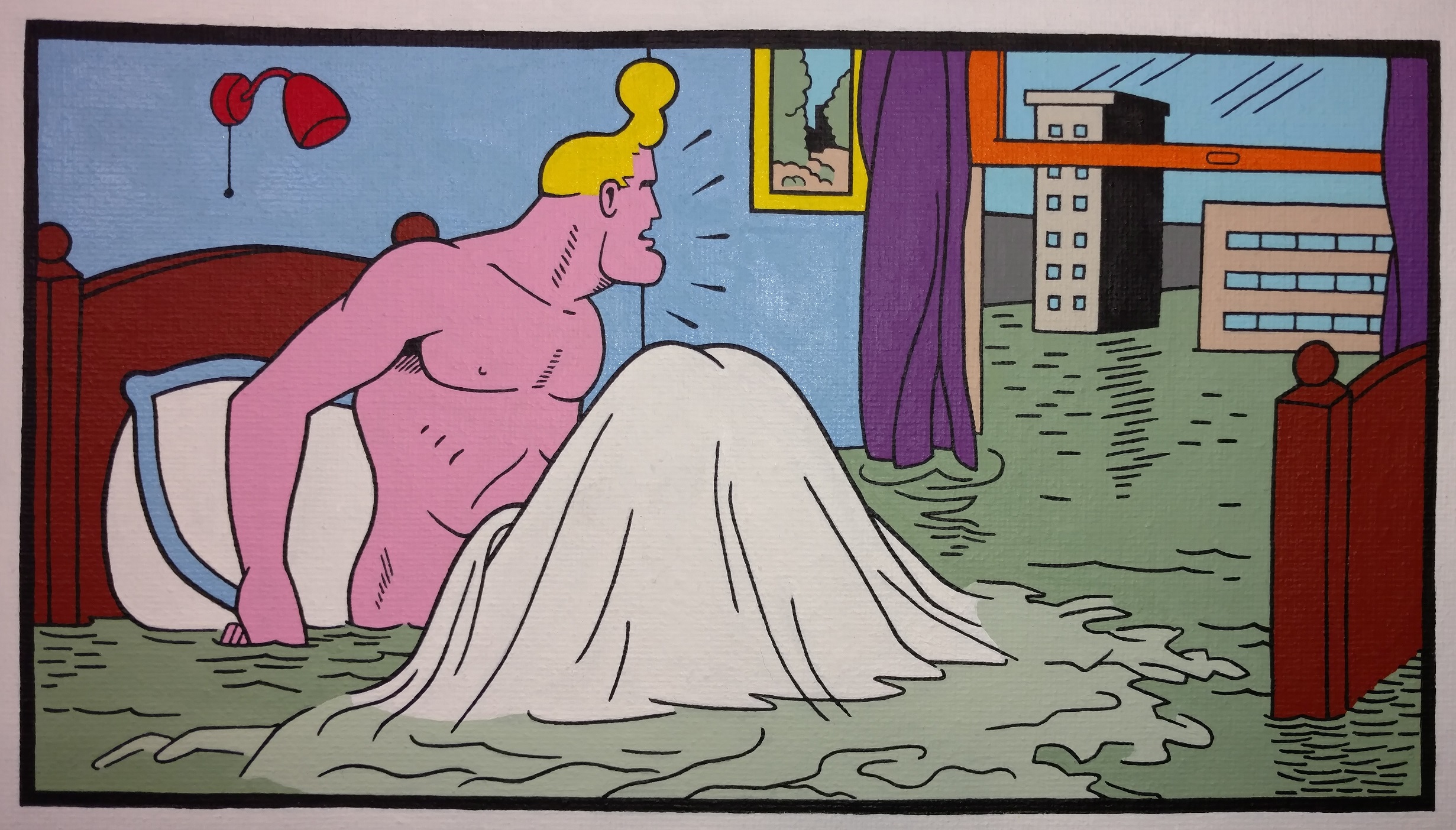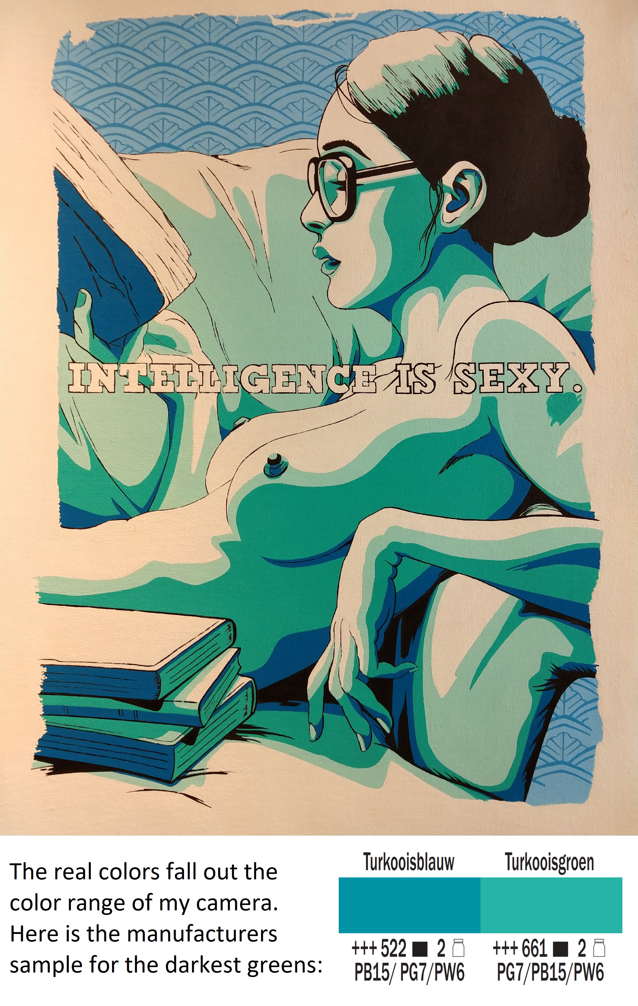 Making it 75 x 100 cm in Acrylics, it is quite a lengthy job. Combining it with my dayjob and other works of art, we're 3 years in the making...